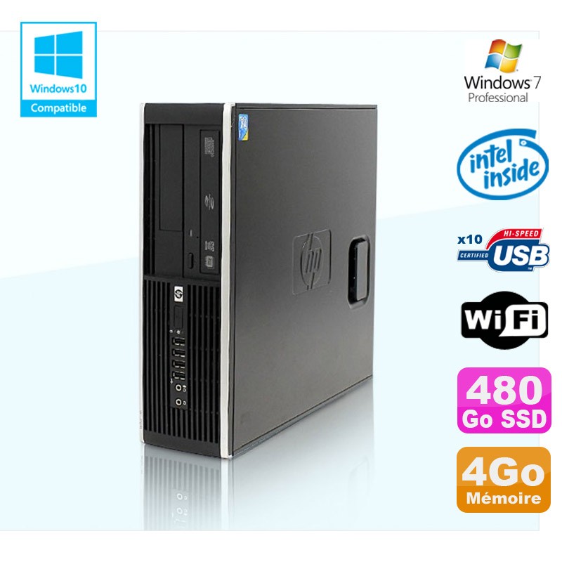 PC HP Compaq Elite 8100 SFF G6950 2,8 GHz 4Go 480Go SSD Wifi Graveur W7 Pro