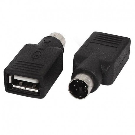 Adaptateur PS/2 Mâle vers USB 2.0 Femelle - Pour Clavier et Souris - Couleur Noir