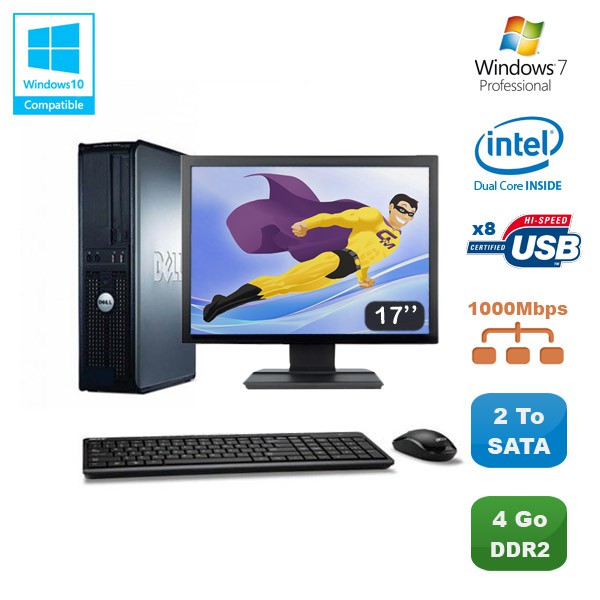 Lot PC DELL Optiplex 760 DT Dual Core E5200 2,5Ghz 4Go 2To WIN 7 + Ecran 17"