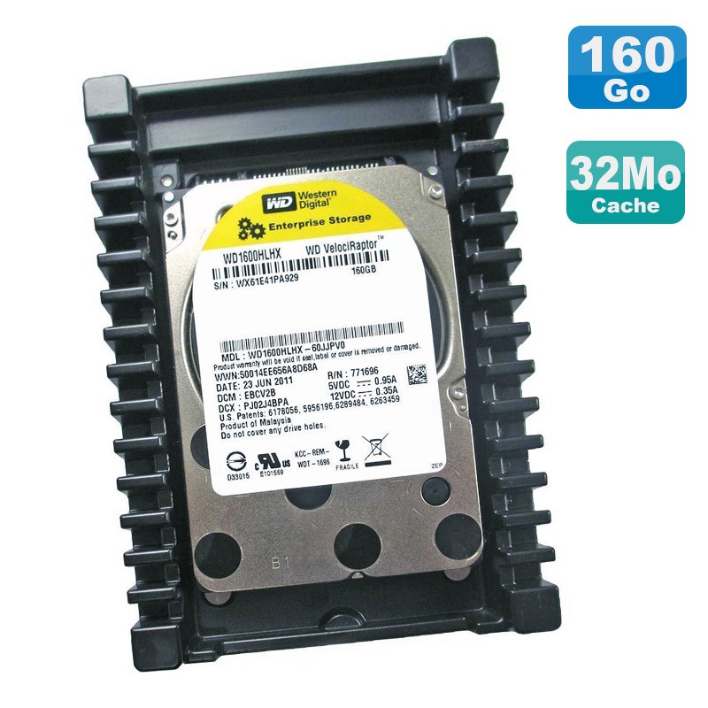 Disque dur SATA 2.5" WESTERN DIGITAL - VelociRaptor WD1600HLHX-60JJPV0 - 160Go - 10000 RPM - Cache 32Mo - SATA 6Gb/s - Ne convient pas aux PC portables - Garantie 6 mois