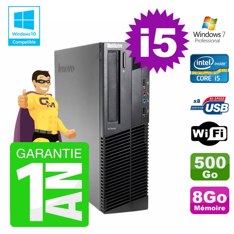 PC Lenovo M91p SFF Intel I5-2400 8Go Disque 500Go Graveur Wifi W7
