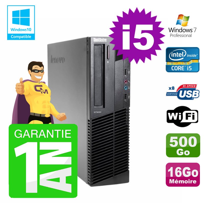 PC Lenovo M91p SFF Intel I5-2400 16Go Disque 500Go Graveur Wifi W7