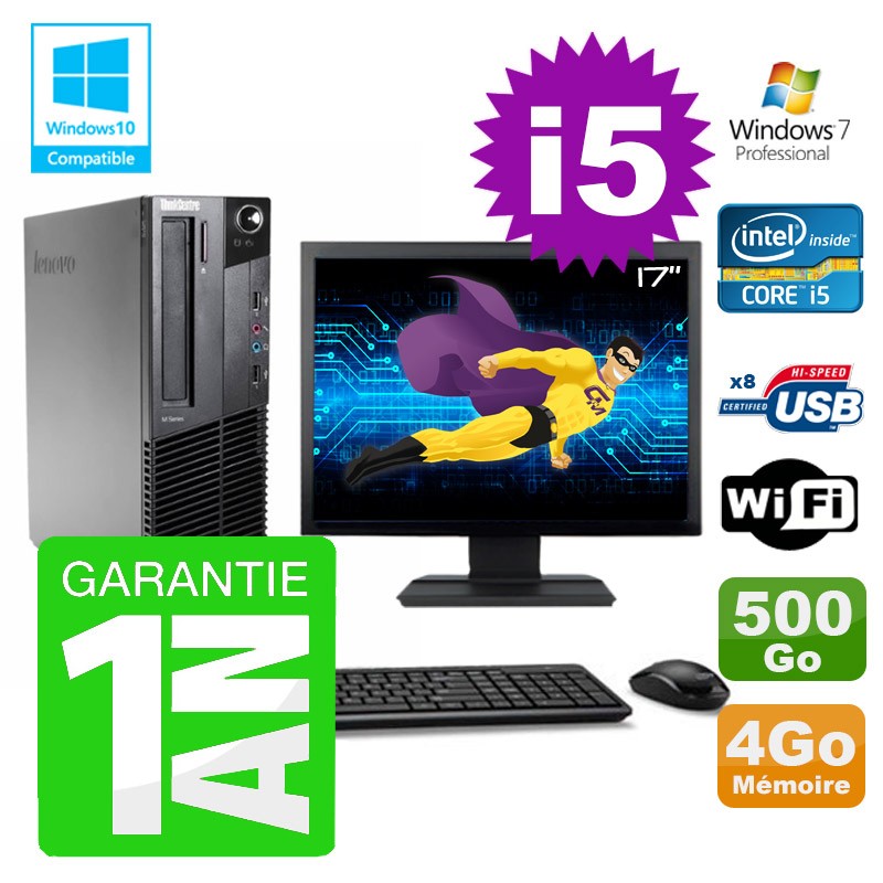 PC Lenovo M91p SFF Intel I5-2400 4Go Disque 500Go Graveur Wifi W7 Ecran 17"