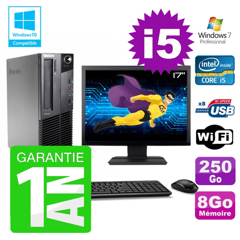 PC Lenovo M91p SFF Intel I5-2400 8Go Disque 250Go Graveur Wifi W7 Ecran 17"