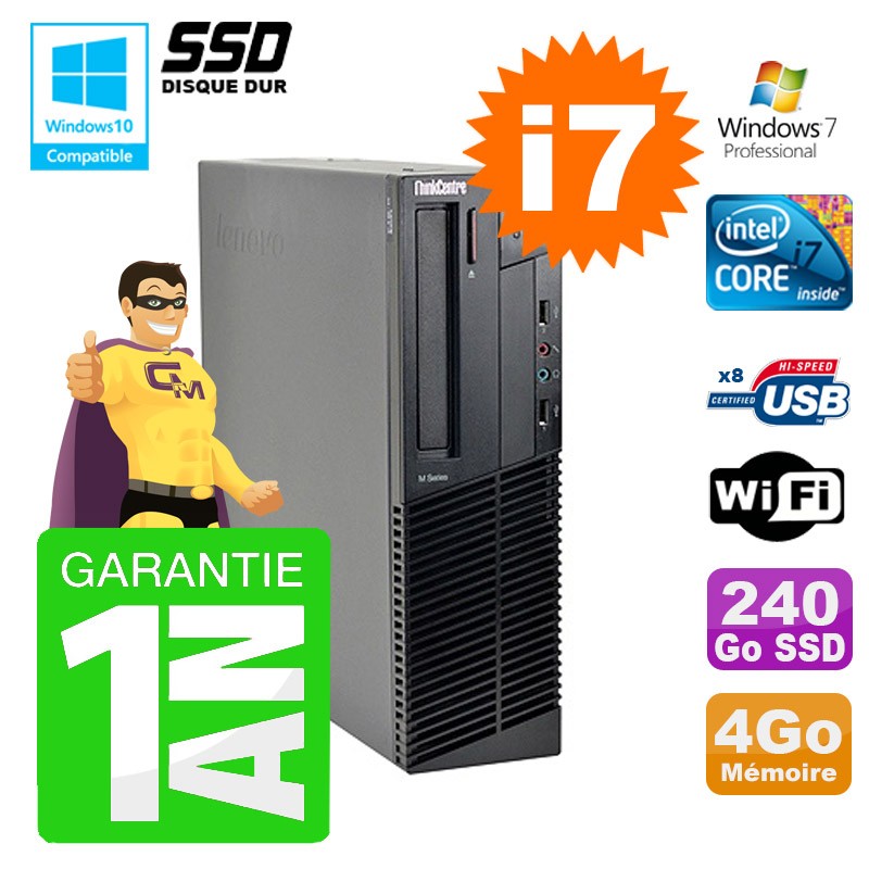 PC Lenovo M91p SFF Intel I7-2600 4Go Disque 240Go SSD Graveur Wifi W7