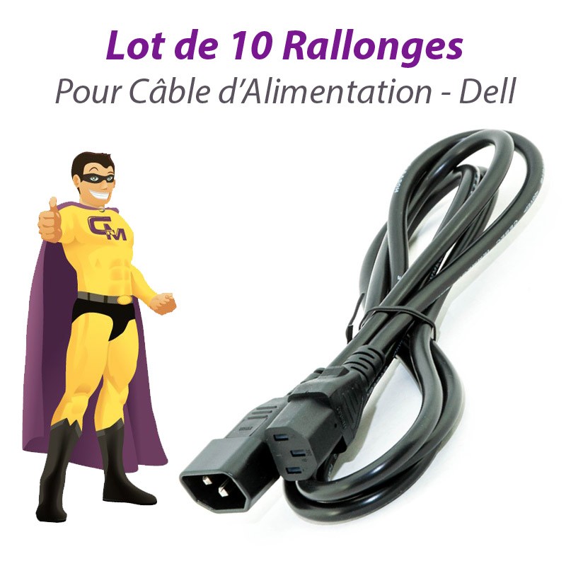 Lot de 10 Adaptateurs Rallonges Câbles Alimentation Dell - P/N 0U9399 / U9399 - Couleur Noir - 250V / 10A - Garantie 6 mois