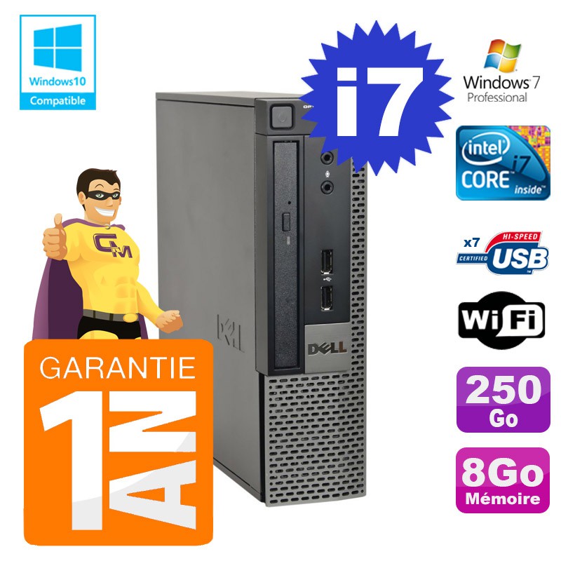 Dell Optiplex 790 Ultra USFF - Intel Core I7-2600 3,4Ghz (8 Mo de cache) - 8 Go DDR3 - Disque Dur 250 Go - Graveur DVD - Clé WIFI USB - Windows 7 Pro - Garantie = 1 an.