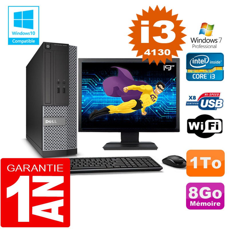 PC DELL 3020 SFF Core I3-4130 Ram 8Go Disque 1 To Wifi W7 Ecran 19"
