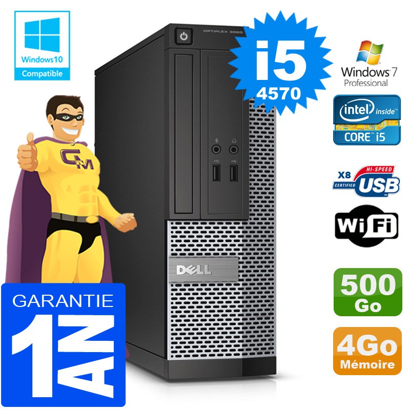 PC DELL 3020 SFF - Intel Core I5-4570 3.2GHz (6 Mo de cache) - 4 Go DDR3 - Disque Dur 500Go - Graveur DVD - Clé WIFI USB - Windows 7 Pro - Garantie = 1 an.