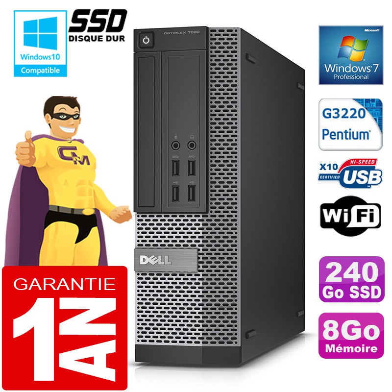 PC DELL 7020 SFF - Intel Pentium G3220 3.0GHz (3 Mo de cache) - 8 Go DDR3 - Disque Dur 240 Go SSD - Graveur DVD - Clé WIFI USB - Windows 7 Pro - Garantie = 1 an.