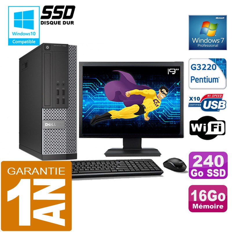 PC DELL 7020 SFF Intel G3220 Ram 16Go Disque 240 Go SSD Wifi W7 Ecran 19"