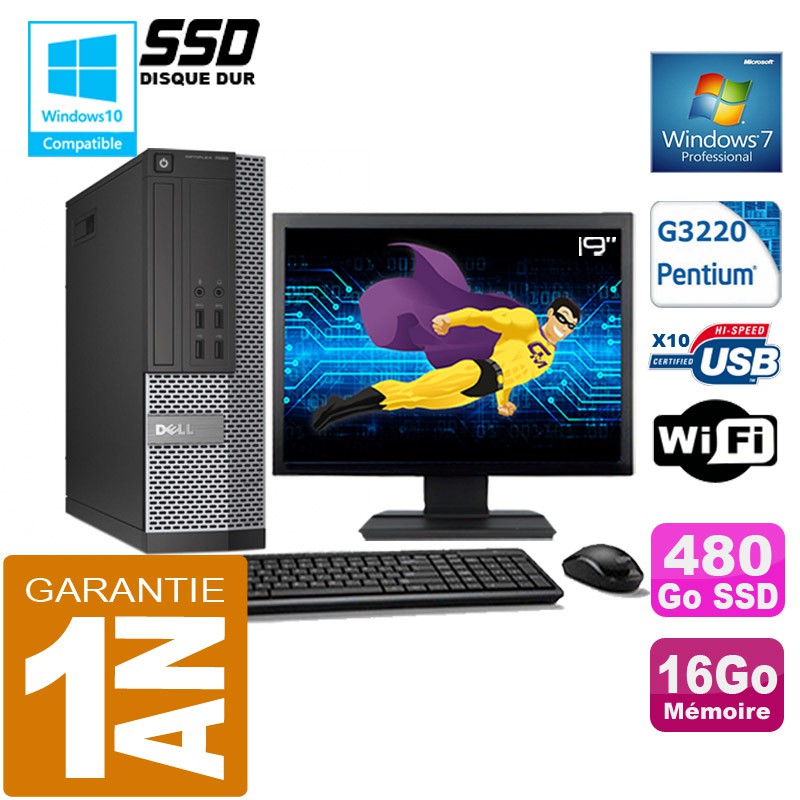PC DELL 7020 SFF Intel G3220 Ram 16Go Disque 480 Go SSD Wifi W7 Ecran 19"