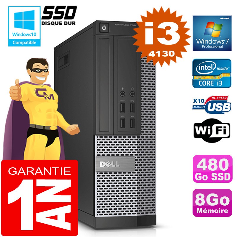 PC DELL 7020 SFF Core I3-4130 Ram 8Go Disque 480 Go SSD Graveur DVD Wifi W7