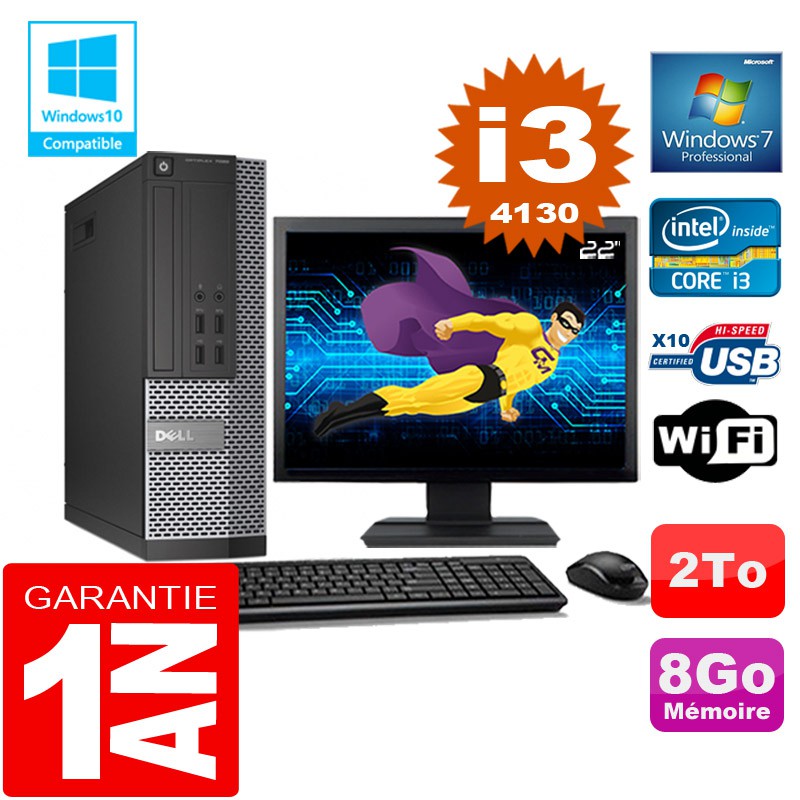 PC DELL 7020 SFF Core I3-4130 Ram 8Go Disque 2 To Wifi W7 Ecran 22"