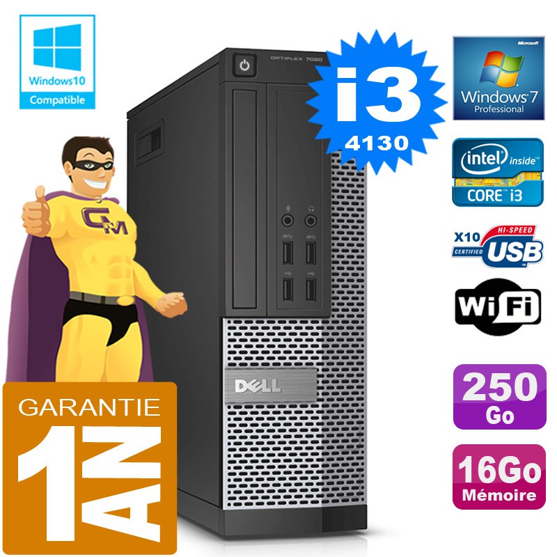 PC DELL 7020 SFF Core I3-4130 Ram 16Go Disque 250 Go Graveur DVD Wifi W7