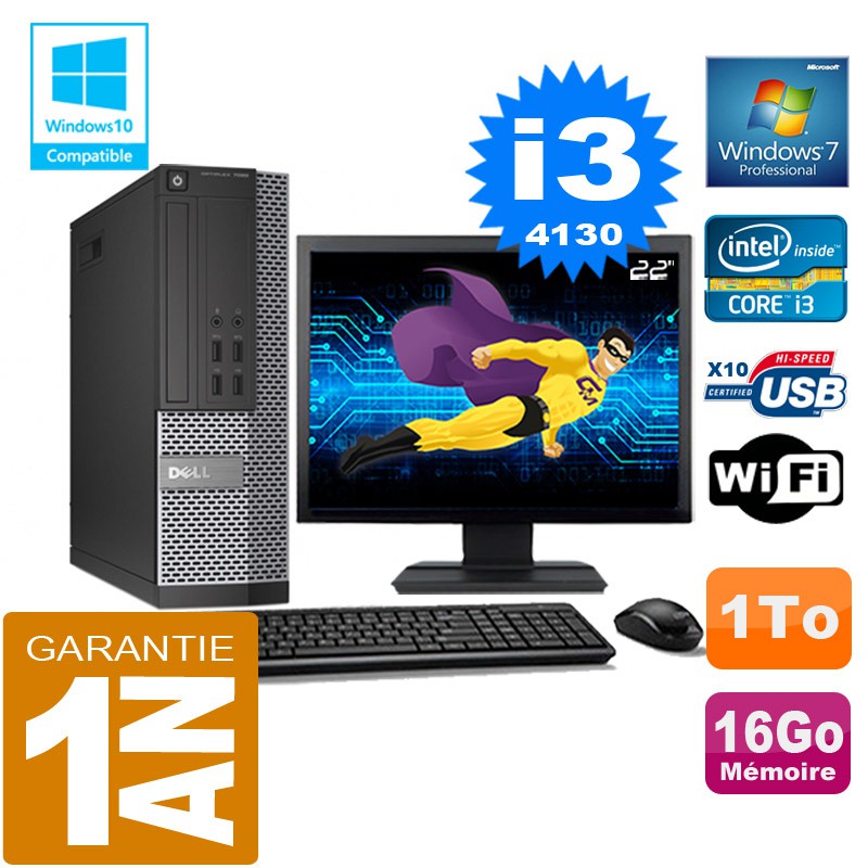 PC DELL 7020 SFF Core I3-4130 Ram 16Go Disque 1 To Wifi W7 Ecran 22"
