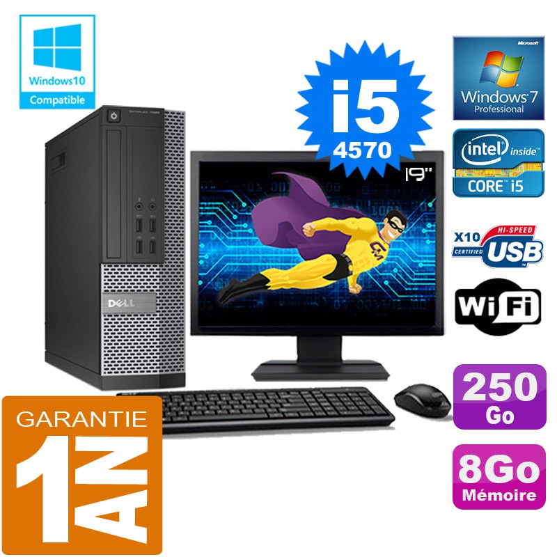 PC DELL 7020 SFF Core I5-4570 Ram 8Go Disque 250 Go Wifi W7 Ecran 19"