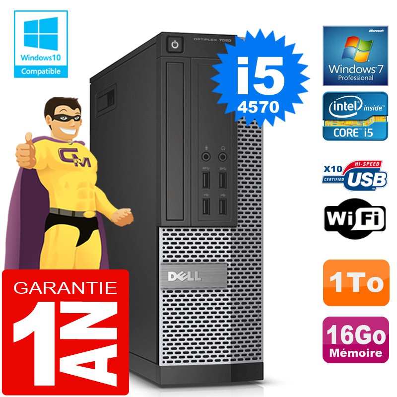 PC DELL 7020 SFF -Intel Core I5-4570 3.2GHz (6 Mo de cache) - 16 Go DDR3 - Disque Dur 1To - Graveur DVD - Clé WIFI USB - Windows 7 Pro - Garantie = 1 an.