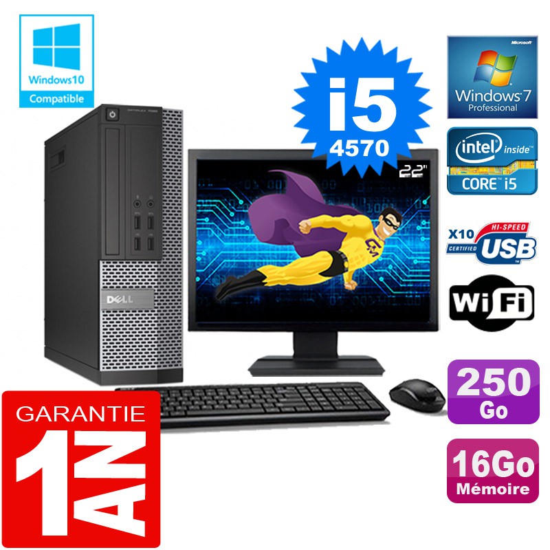 PC DELL 7020 SFF Core I5-4570 Ram 16Go Disque 250 Go Wifi W7 Ecran 22"