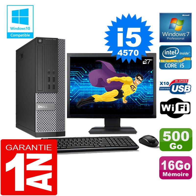 PC DELL 7020 SFF Core I5-4570 Ram 16Go Disque 500 Go Wifi W7 Ecran 27"