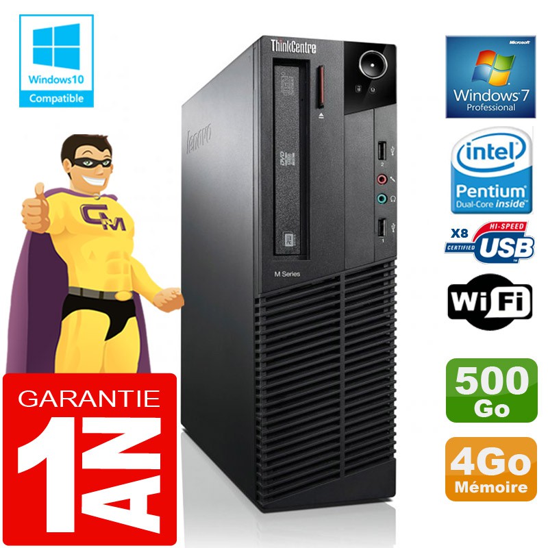 PC Lenovo M92p SFF Intel G630 Ram 4Go Disque 500 Go Graveur DVD Wifi W7