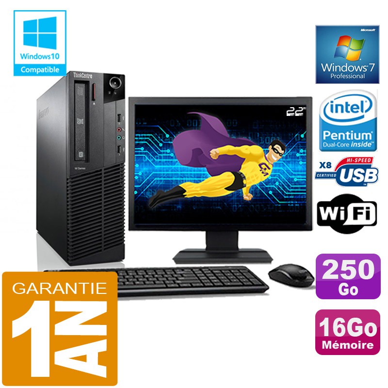 PC Lenovo M92p SFF Intel G630 Ram 16Go Disque 250 Go Wifi W7 Ecran 22"