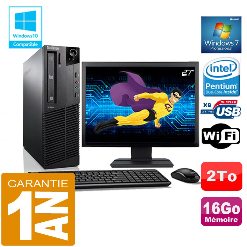 PC Lenovo M92p SFF Intel G630 Ram 16Go Disque 2 To Wifi W7 Ecran 27"