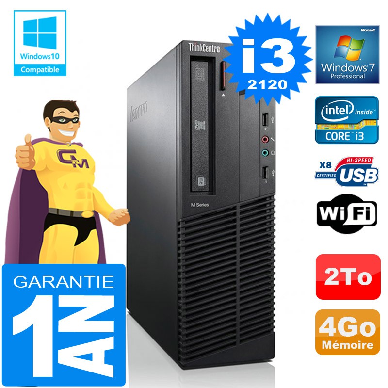 PC Lenovo M92p SFF Core I3-2120 Ram 4Go Disque 2 To Graveur DVD Wifi W7