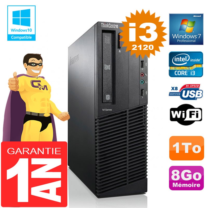 PC Lenovo M92p SFF Core I3-2120 Ram 8Go Disque 1 To Graveur DVD Wifi W7