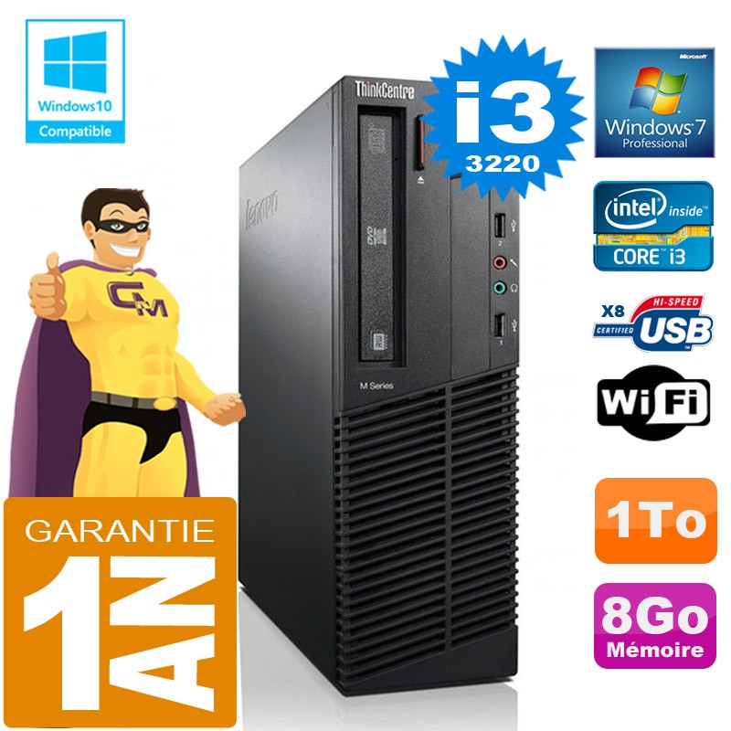 PC Lenovo M92p SFF -Core I3-3220 3.3Ghz (3 Mo de cache) - 8 Go DDR3 - Disque Dur 1To - Graveur DVD - Clé WIFI USB - Windows 7 Pro - Garantie = 1 an.