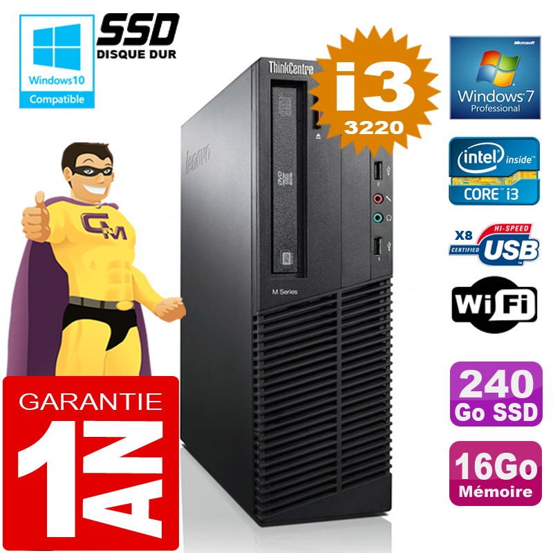 PC Lenovo M92p SFF Core I3-3220 Ram 16Go Disque 240 Go SSD Graveur DVD Wifi W7