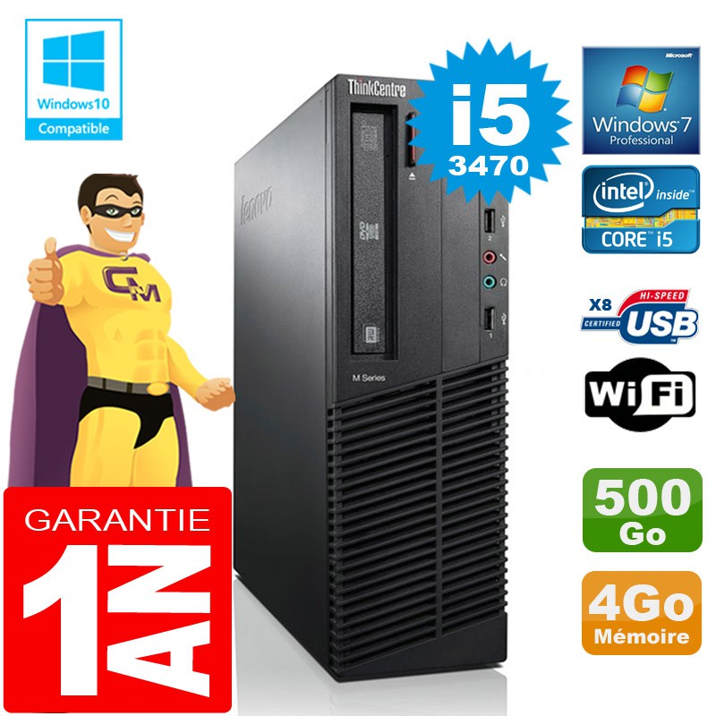 PC Lenovo M92p SFF - Intel Core I5-3470 3.2Ghz (6 Mo de cache) - 4 Go DDR3 - Disque Dur 500Go - Graveur DVD - Clé WIFI USB - Windows 7 Pro - Garantie = 1 an.
