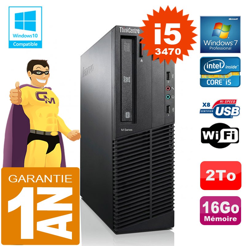 PC Lenovo M92p SFF - Intel Core I5-3470 3.2Ghz (6 Mo de cache) - 16 Go DDR3 - Disque Dur 2 To - Graveur DVD - Clé WIFI USB - Windows 7 Pro - Garantie = 1 an.