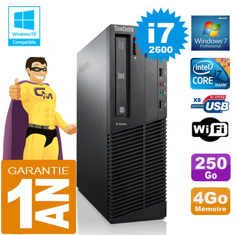 PC Lenovo M92p SFF Core I7-2600 Ram 4Go Disque 250 Go Graveur DVD Wifi W7