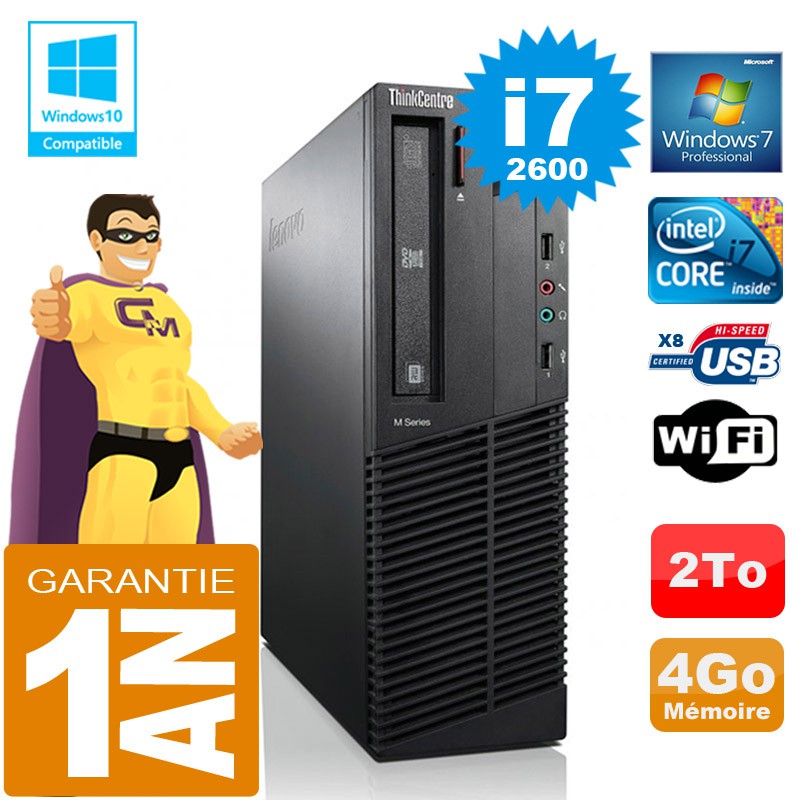 PC Lenovo M92p SFF - Intel Core I7-2600 3.4Ghz (8 Mo de cache) - 4 Go DDR3 - Disque Dur 2 To - Graveur DVD - Clé WIFI USB - Windows 7 Pro - Garantie = 1 an.
