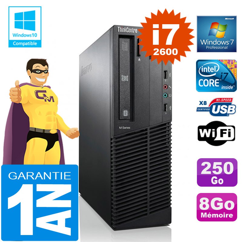 PC Lenovo M92p SFF Core I7-2600 Ram 8Go Disque 250 Go Graveur DVD Wifi W7