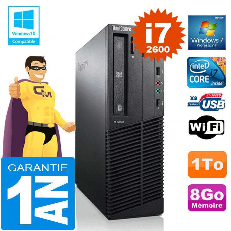 PC Lenovo M92p SFF - Intel Core I7-2600 3.4Ghz (8 Mo de cache) - 8 Go DDR3 - Disque Dur 1To - Graveur DVD - Clé WIFI USB - Windows 7 Pro - Garantie = 1 an.