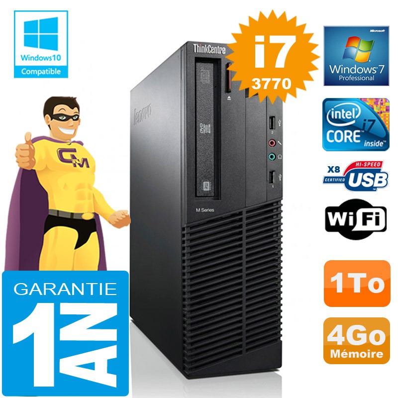 PC Lenovo M92p SFF Core I7-3770 Ram 4Go Disque 1 To Graveur DVD Wifi W7
