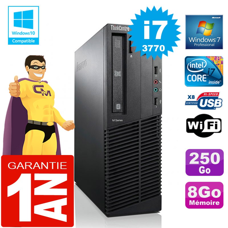 PC Lenovo M92p SFF Core I7-3770 Ram 8Go Disque 250 Go Graveur DVD Wifi W7