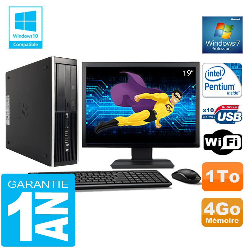 PC HP Compaq 8300 SFF Intel G850 Ram 4Go Disque 1 To Wifi W7 Ecran 19"