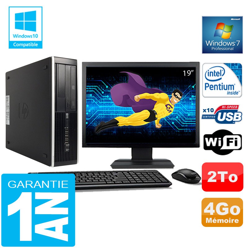 PC HP Compaq 8300 SFF Intel G850 Ram 4Go Disque 2 To Wifi W7 Ecran 19"