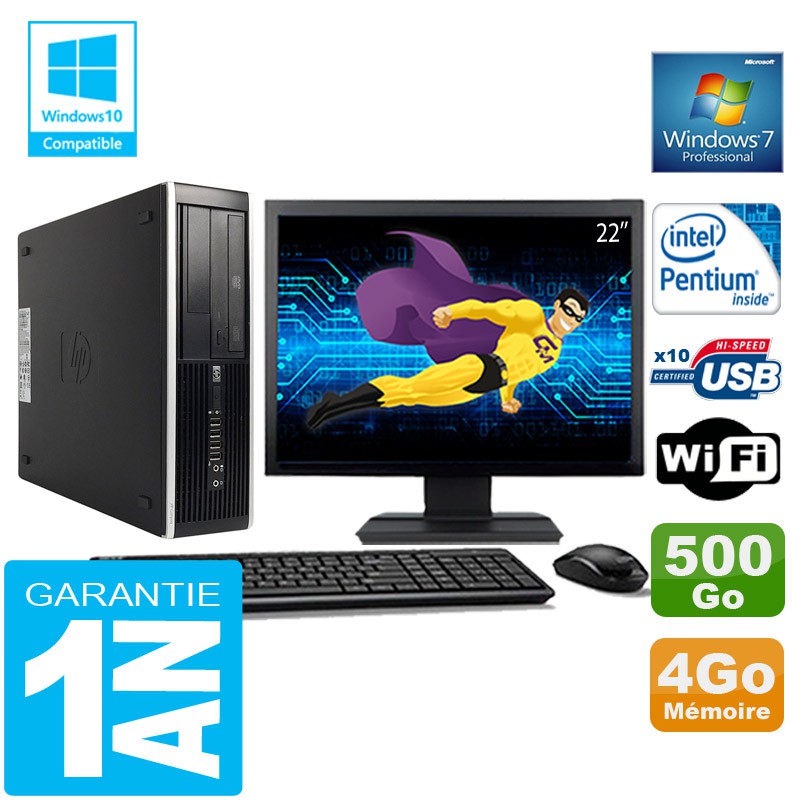 PC HP Compaq 8300 SFF Intel G850 Ram 4Go Disque 500 Go Wifi W7 Ecran 22"