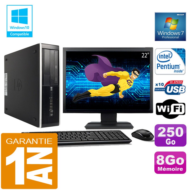 PC HP Compaq 8300 SFF Intel G850 Ram 8Go Disque 250 Go Wifi W7 Ecran 22"