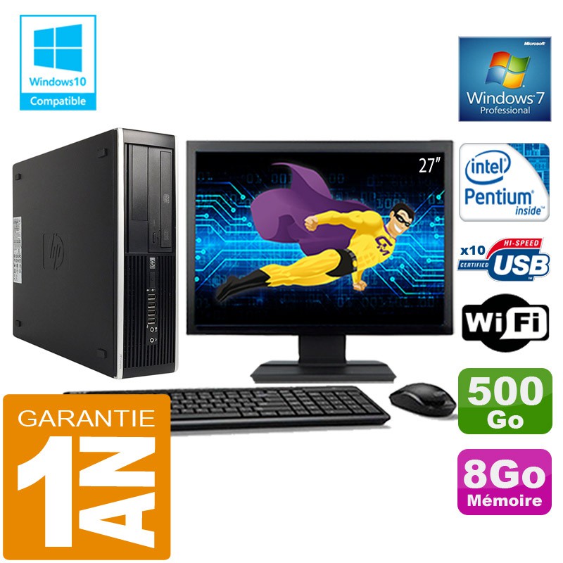 PC HP Compaq 8300 SFF Intel G850 Ram 8Go Disque 500 Go Wifi W7 Ecran 27"