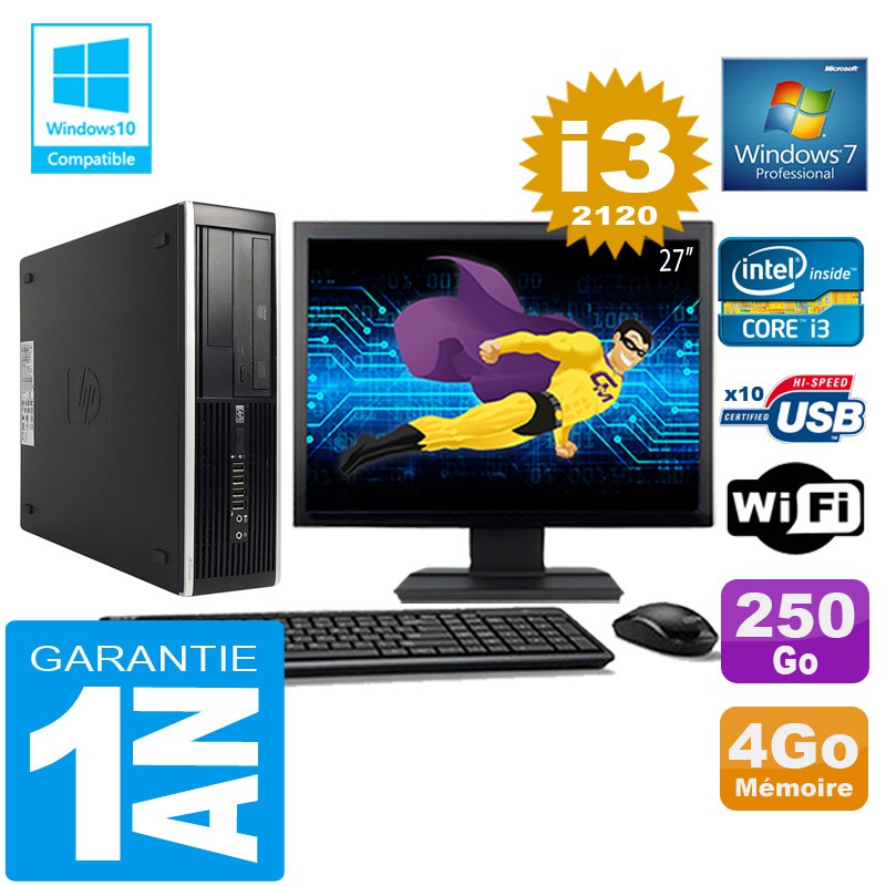 PC HP Compaq 8300 SFF Core I3-2120 Ram 4Go Disque 250 Go Wifi W7 Ecran 27"