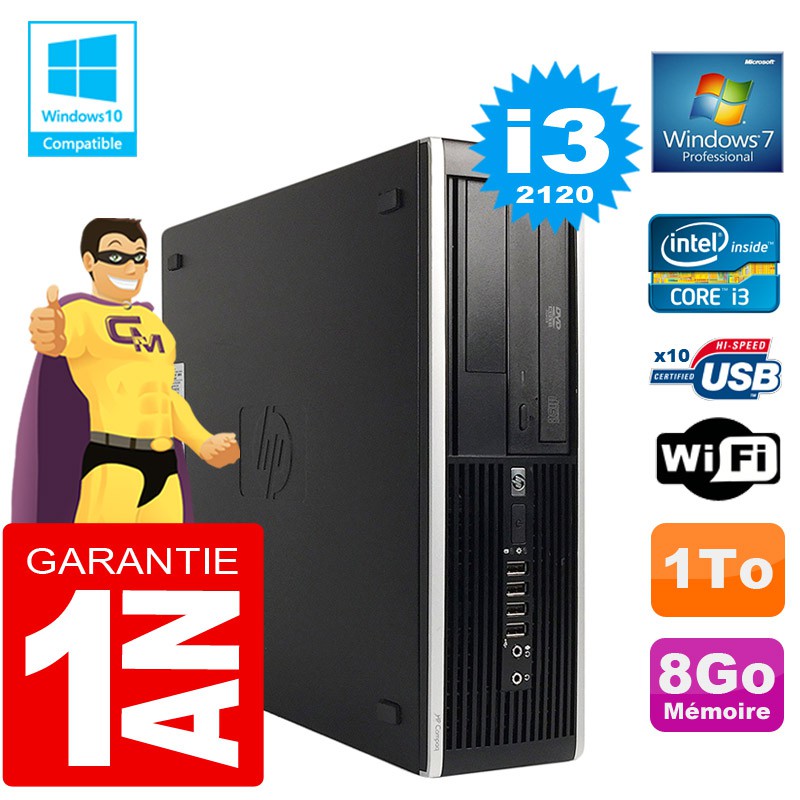 PC HP Compaq 8300 SFF Core I3-2120 Ram 8Go Disque 1 To Graveur DVD Wifi W7