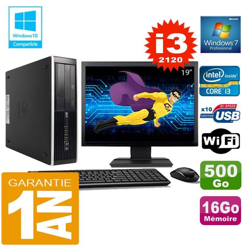 PC HP Compaq 8300 SFF Core I3-2120 Ram 16Go Disque 500 Go Wifi W7 Ecran 19"