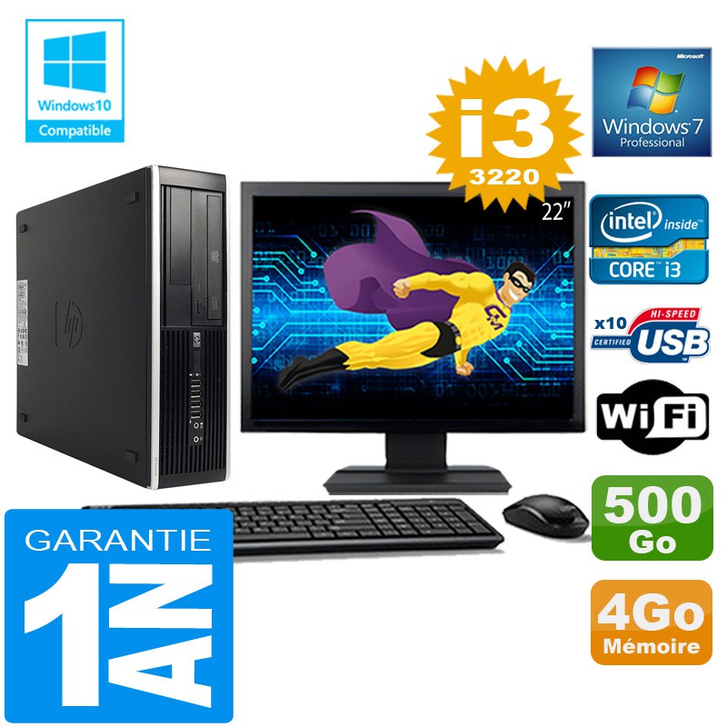 PC HP Compaq 8300 SFF Core I3-3220 Ram 4Go Disque 500 Go Wifi W7 Ecran 22"