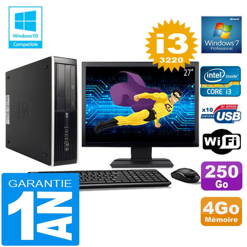 PC HP Compaq 8300 SFF Core I3-3220 Ram 4Go Disque 250 Go Wifi W7 Ecran 27"