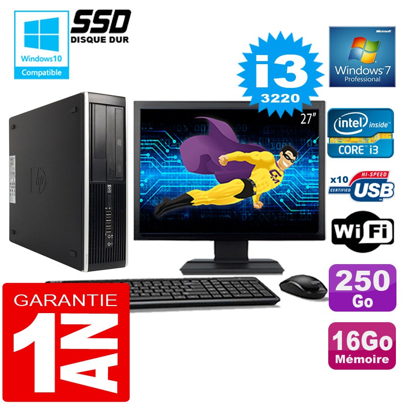 PC HP Compaq 8300 SFF Core I3-3220 Ram 16Go Disque 250 Go Wifi W7 Ecran 27"